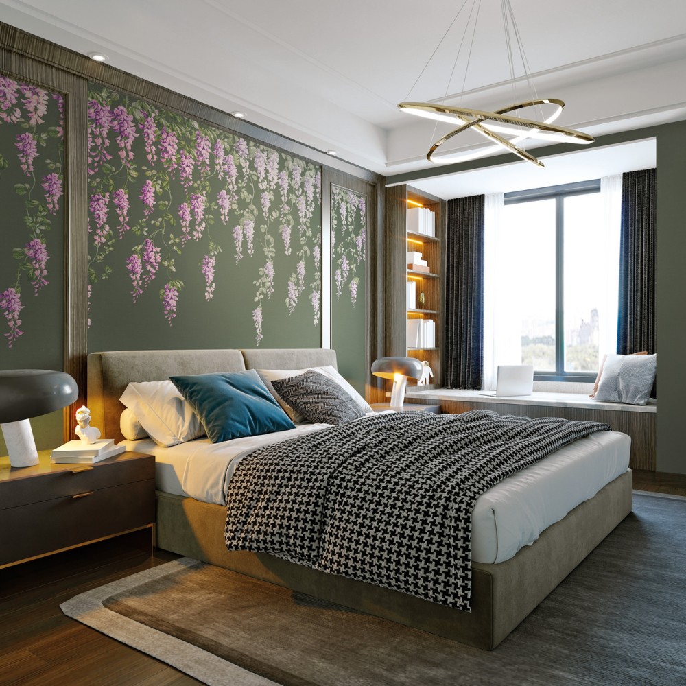 Панно Loymina Панорама Лиловый дождь PNR2 005/3 изготавливается методом цифровой печати по высококачественному фактурному флизелину. Панно состоит из 3 полос по 100 см шириной и 300 см высотой каждая. Общий размер панно составляет 3 метра в высоту и 3 метра в ширину — площадь покрытия 9 м2. Можно приобрести любое количество полос и создать панно какой угодно длины.