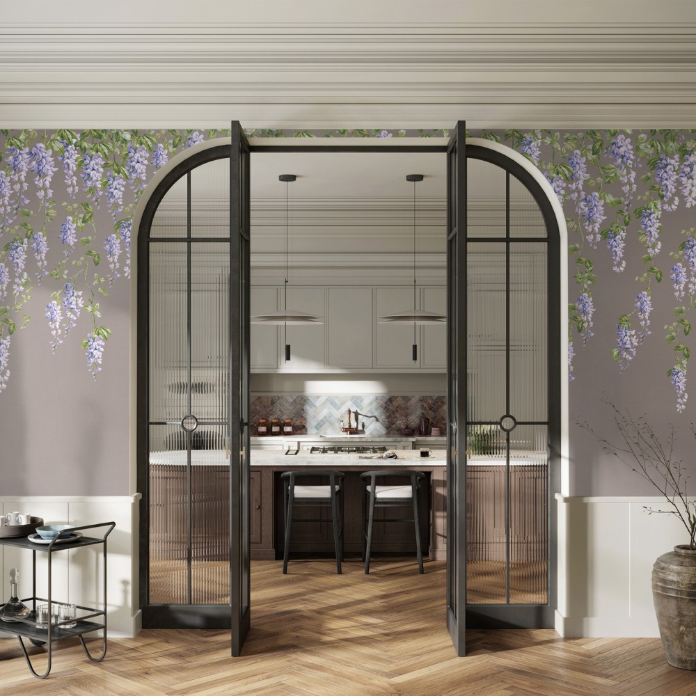 Панно Loymina Панорама Лиловый дождь PNR2 009 изготавливается методом цифровой печати по высококачественному фактурному флизелину. Панно состоит из 3 полос по 100 см шириной и 300 см высотой каждая. Общий размер панно составляет 3 метра в высоту и 3 метра в ширину — площадь покрытия 9 м2. Можно приобрести любое количество полос и создать панно какой угодно длины.