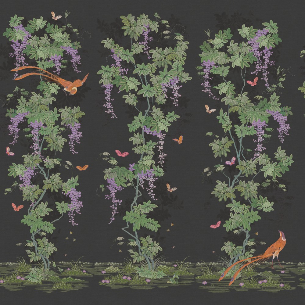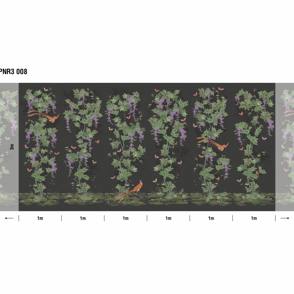 Панно Loymina Панорама Шинуазри: райский сад PNR3 008 изготавливается методом цифровой печати по высококачественному фактурному флизелину. Панно состоит из 6 полос по 100 см шириной и 300 см высотой каждая. Общий размер панно составляет 3 метра в высоту и 6 метров в ширину — площадь покрытия 18 м2. Можно приобрести любое количество полос и создать панно какой угодно длины.