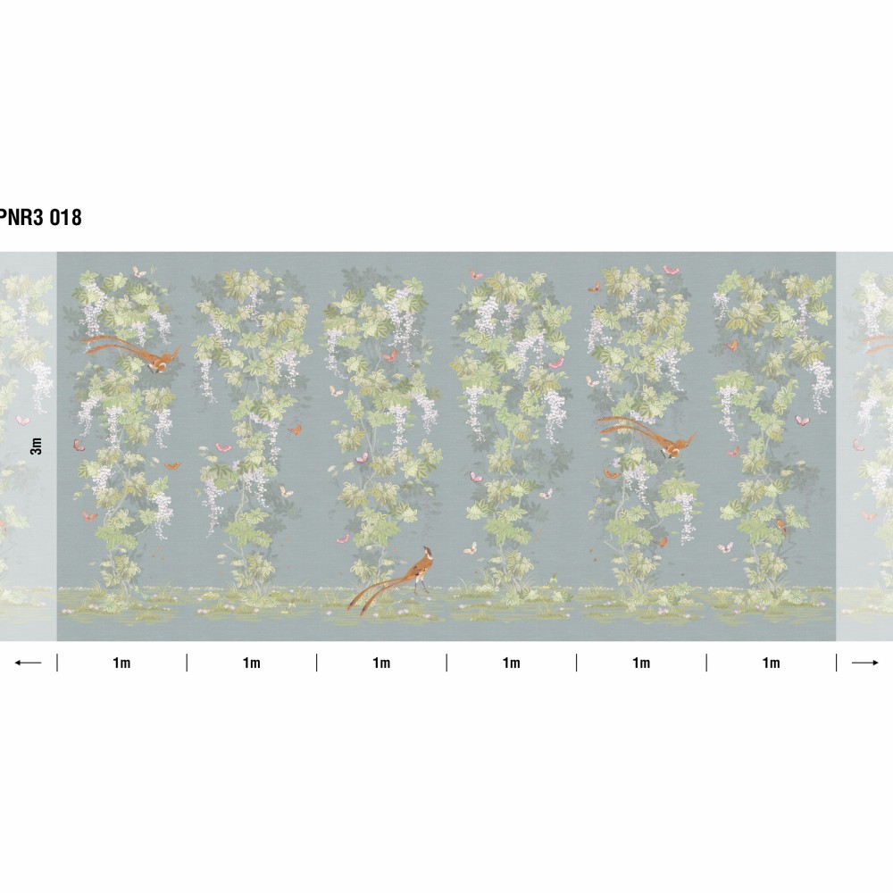 Панно Loymina Панорама Шинуазри: райский сад PNR3 018 изготавливается методом цифровой печати по высококачественному фактурному флизелину. Панно состоит из 6 полос по 100 см шириной и 300 см высотой каждая. Общий размер панно составляет 3 метра в высоту и 6 метров в ширину — площадь покрытия 18 м2. Можно приобрести любое количество полос и создать панно какой угодно длины.