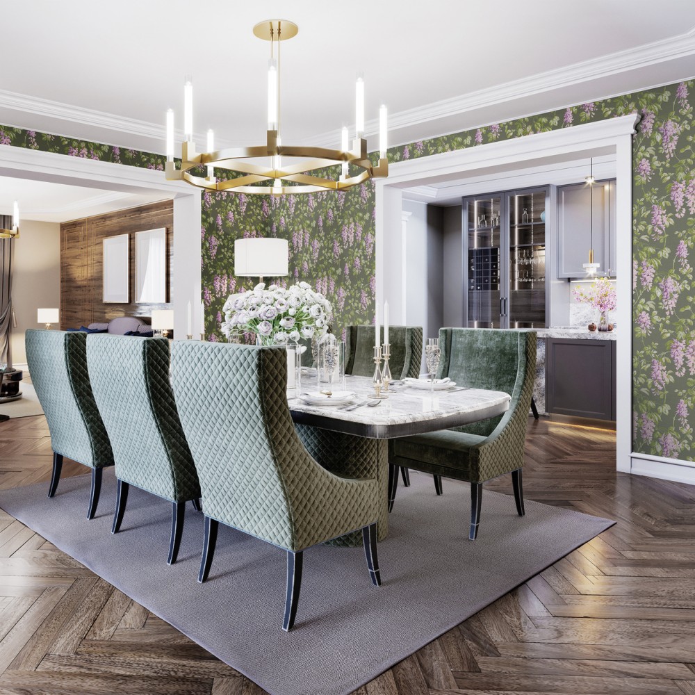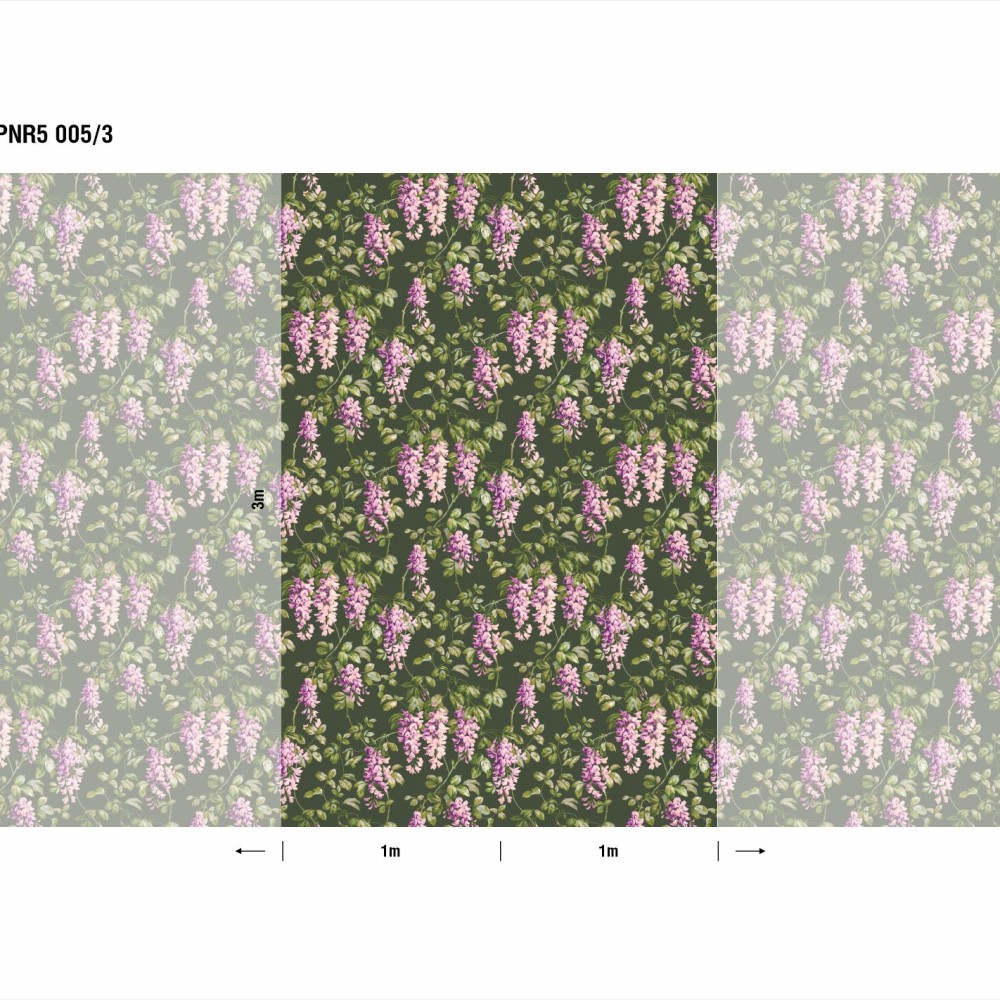 Панно Loymina Панорама Танец вистерий PNR5 005/3 изготавливается методом цифровой печати по высококачественному фактурному флизелину. Панно состоит из 3 полос по 100 см шириной и 300 см высотой каждая. Общий размер панно составляет 3 метра в высоту и 3 метра в ширину — площадь покрытия 9 м2. Можно приобрести любое количество полос и создать панно какой угодно длины.