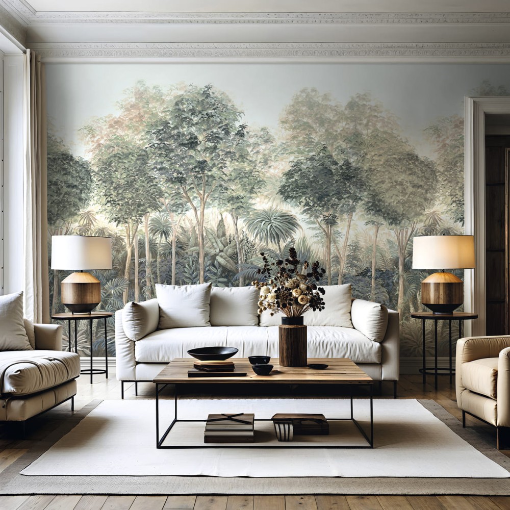 4. Наклейте панно по отмеченной линии на стене, оставляя сверху и снизу намеченного края припуски по 5-10 см. Разгладьте полотно сверху вниз.