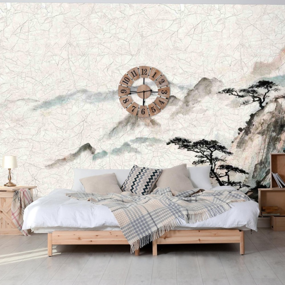 4. Наклейте панно по отмеченной линии на стене, оставляя сверху и снизу намеченного края припуски по 5-10 см. Разгладьте полотно сверху вниз.