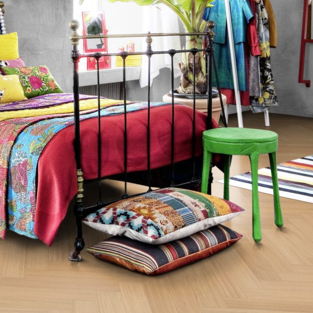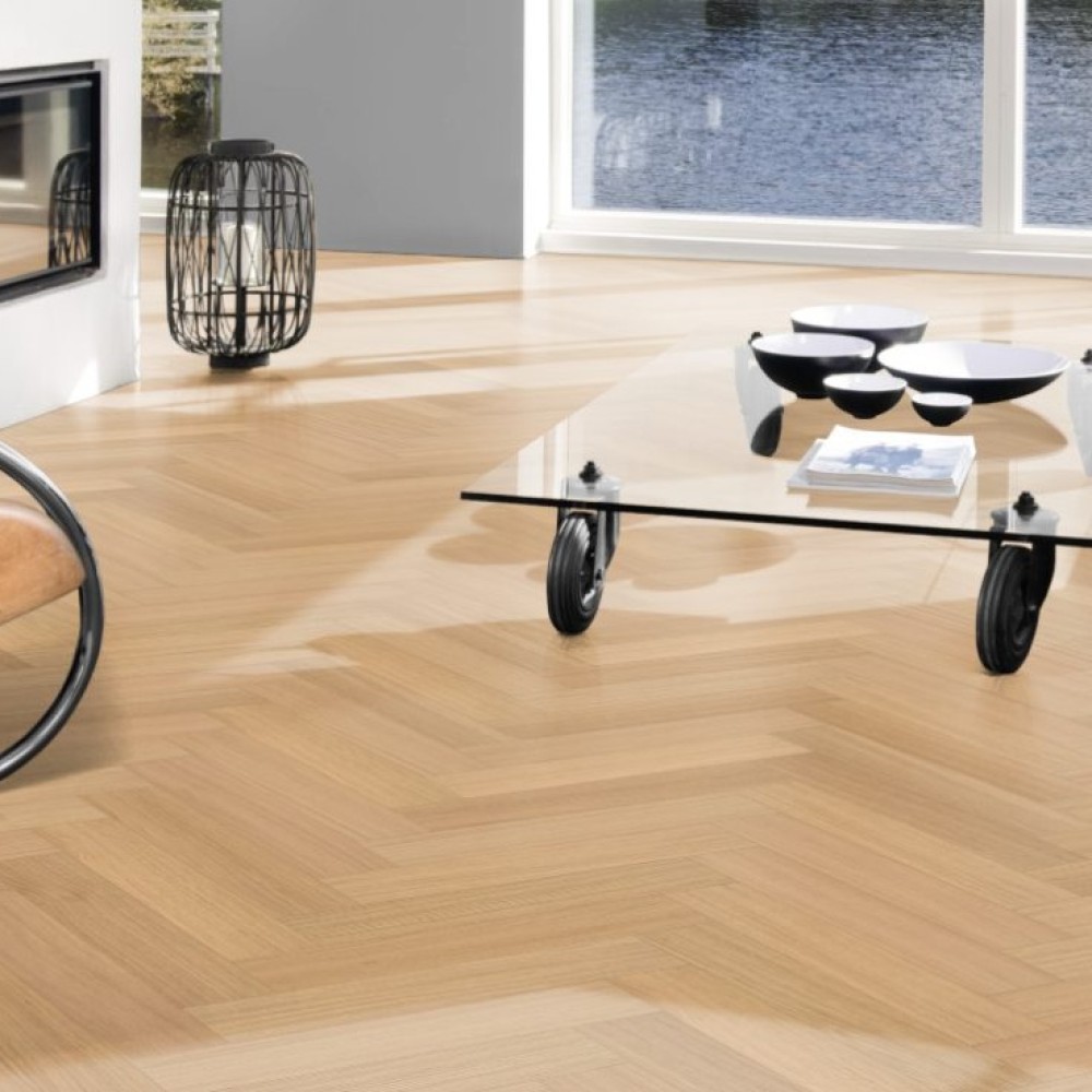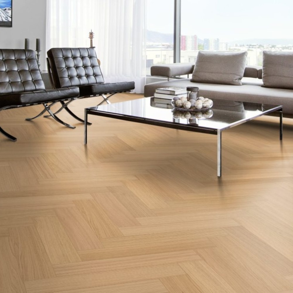 Паркетная доска Kahrs Life Authentic Herringbone Oak Chamomille производится в сортировке Calm — это ровная сортировка с небольшими вариациями цвета. Во внешнем виде доски допускаются малочисленные сучки небольшого размера. С течением времени возможно заметное изменение цвета.