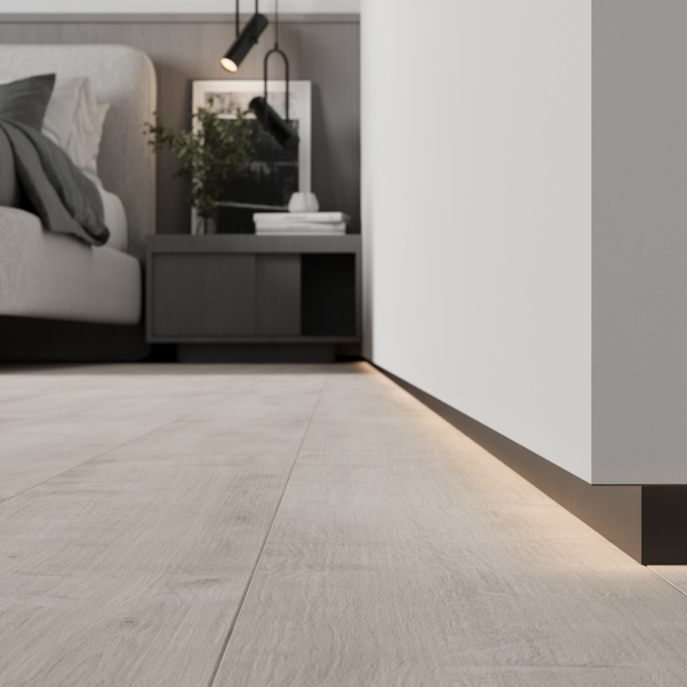 Алюминиевый плинтус Ликорн C-04.2.3 предназначен для скрытого монтажа. Дополнительно к профилю можно заказать декоративную МДФ вставку Ликорн K-27.70.12 или Ликорн K-27.80 для дальнейшей покраски в цвет стен.