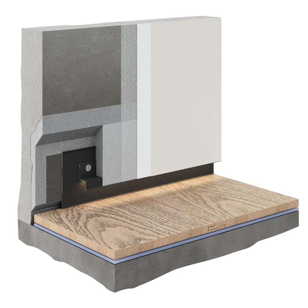 Теневой плинтус Decaro Regulated D002.2 изготовлен из алюминия и предназначен для создания эффекта парящих стен. Состоит из 2 элементов, которые соединяются между собой и позволяют регулировать высоту по стене: профиль-база F1 и фигурная планка D002.2. Может также использоваться и для уровневых потолков из гипсокартона. В модели предусмотрена возможность установки LED подсветки (лента приобретается отдельно).