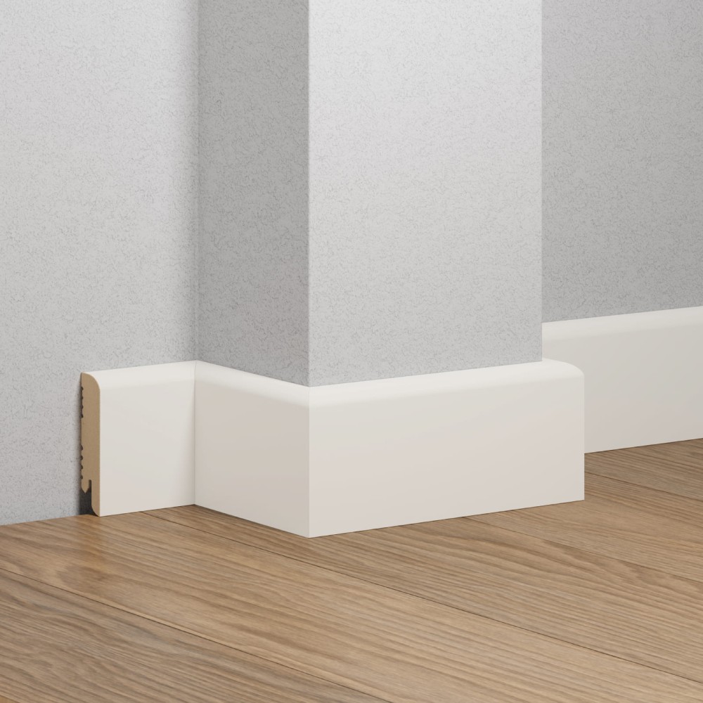 Плинтус Ликорн K-02 Белый произведен из ударопрочного и экологичного МДФ высокой плотности, покрытого полимерным грунтом, краской и антистатичным защитным лаком. Плинтус полностью готов к установке и эксплуатации. Не выцветает со временем, устойчив к пятнам от кофе, масла, чая и пр., поэтому может использоваться даже в кухонных помещениях. В случае загрязнения плинтус можно мыть водой или мыльным раствором.