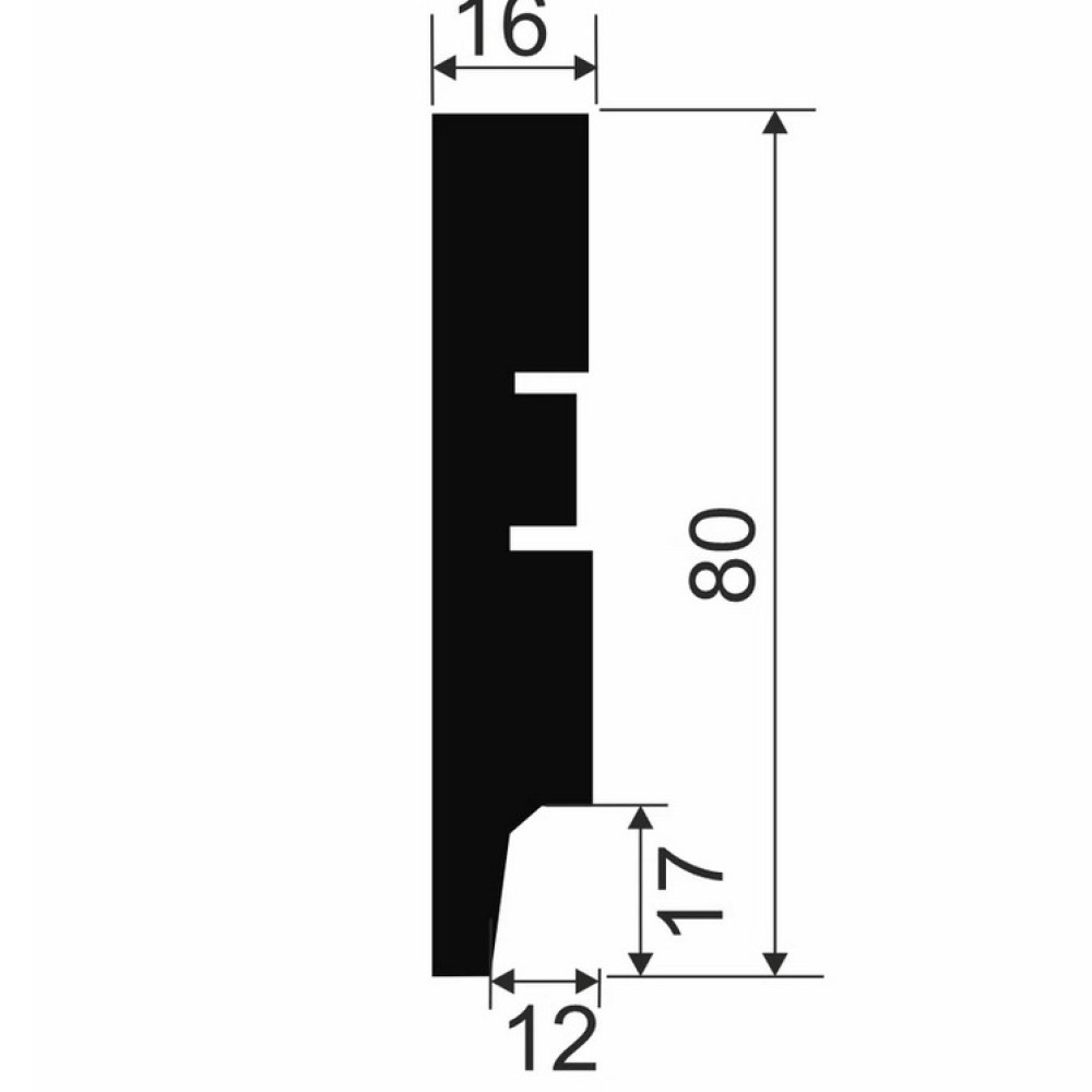 Плинтус Cosca Decor AP79 изготовлен из высококачественного МДФ и покрыт облицовочной финиш-пленкой, защищающей его от внешних воздействий и служащей основой для последующей чистовой окраски плинтуса. Плинтус можно окрашивать любыми видами красок. Монтируется с использованием монтажной планки (приобретается отдельно), саморезов или клея.