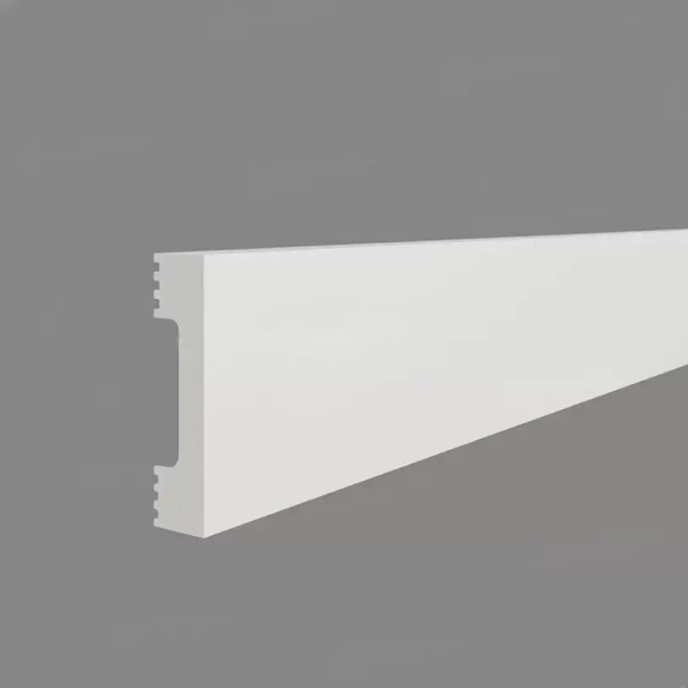 Поверхность плинтусов загрунтована и готова к покраске. Монтаж с помощью клея на водной основе.