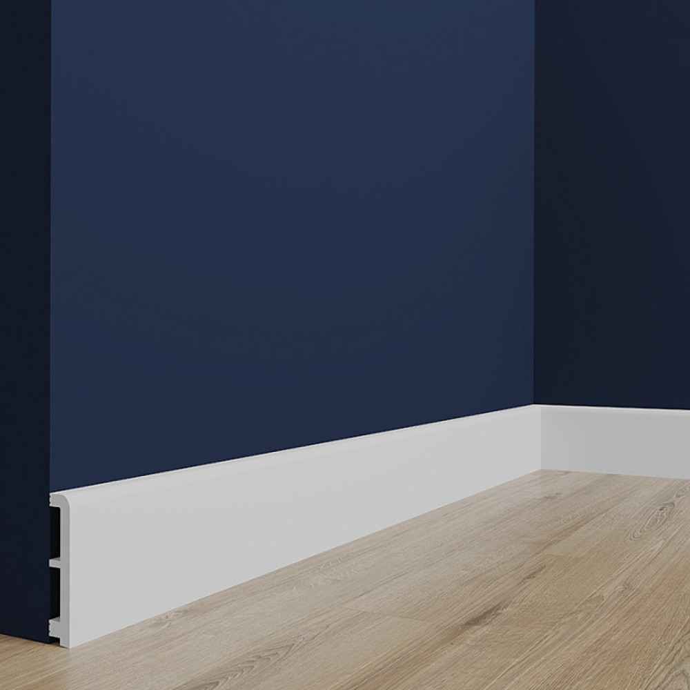 Поверхность изделия загрунтована и готова к покраске. Монтаж производится с помощью монтажного клея, а между собой плинтусы крепятся на стыковочный клей.