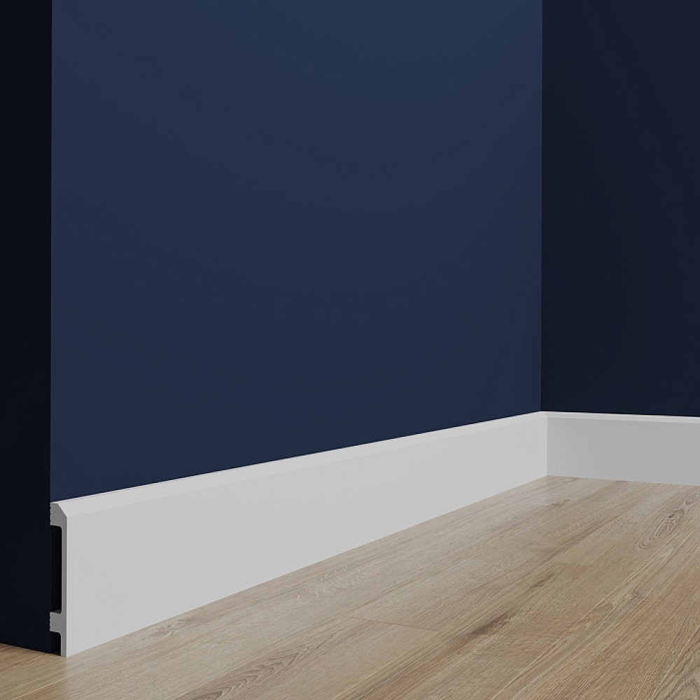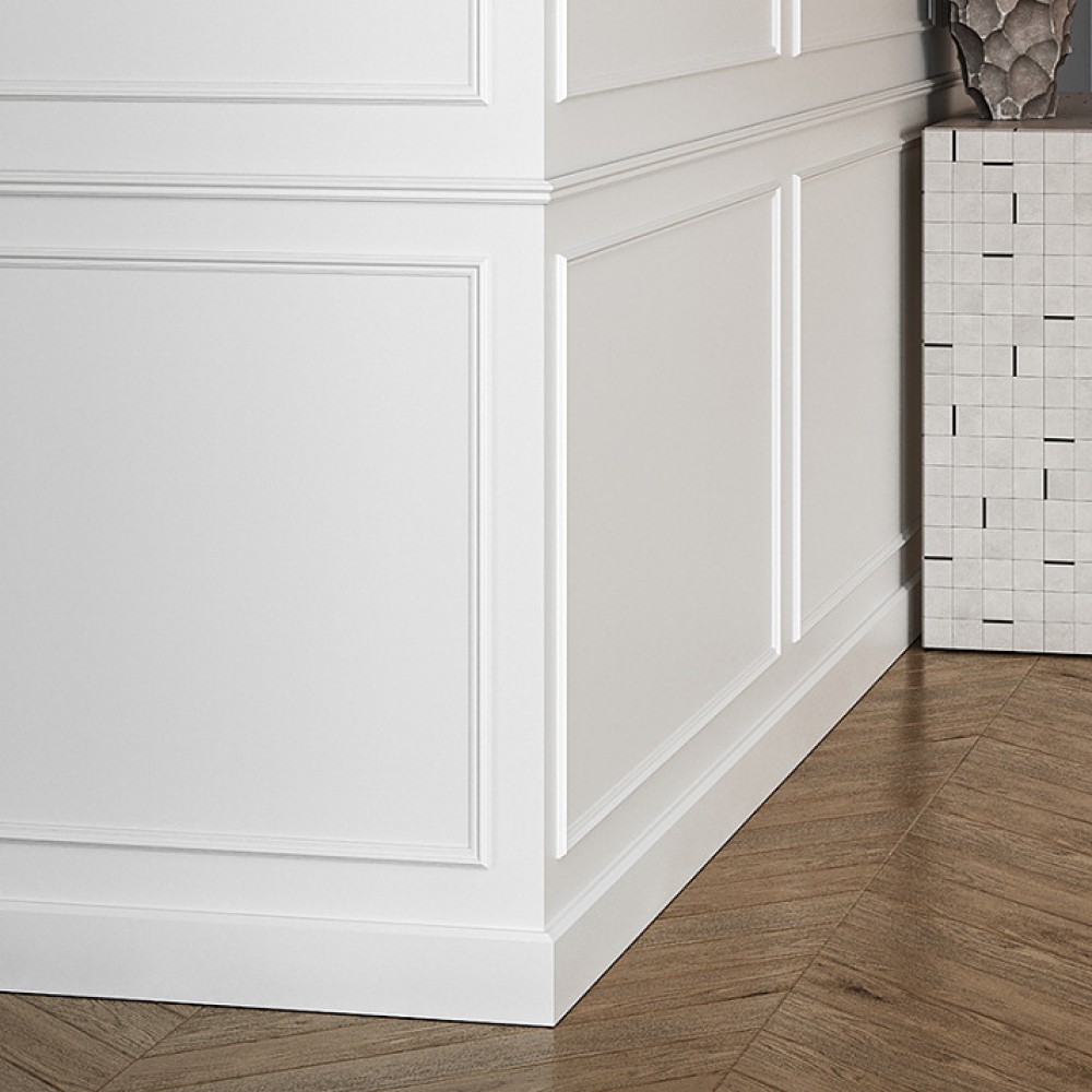 Поверхность изделия загрунтована и готова к покраске. Монтаж производится с помощью монтажного клея, а между собой плинтусы крепятся на стыковочный клей.