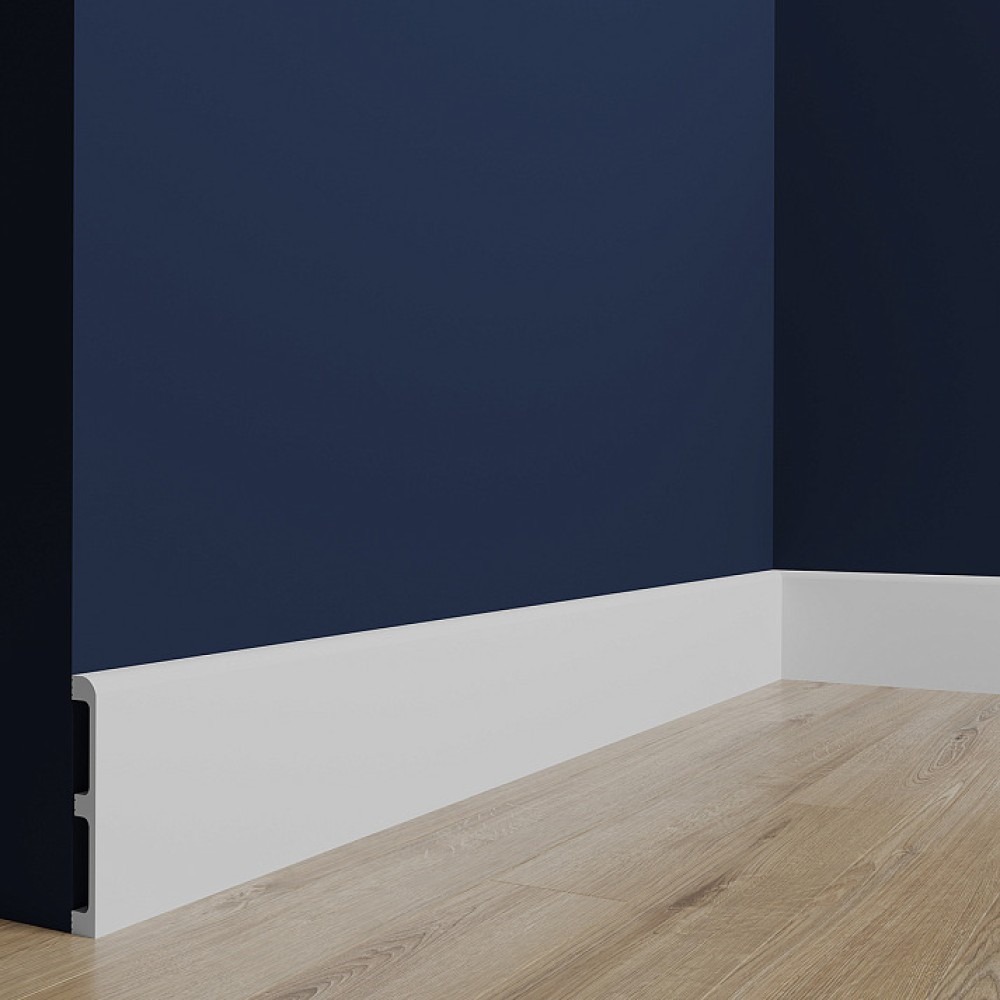 Поверхность изделия загрунтована и готова к покраске. Монтаж производится с помощью монтажного клея, а между собой плинтусы крепятся на стыковочный клей.