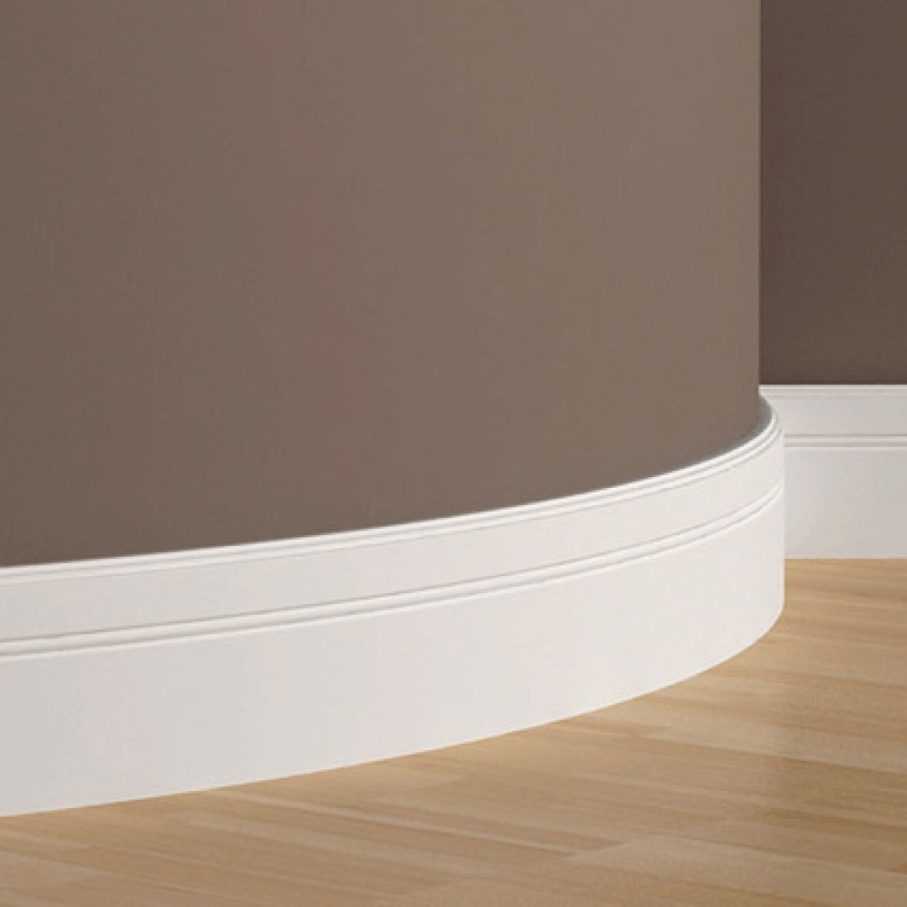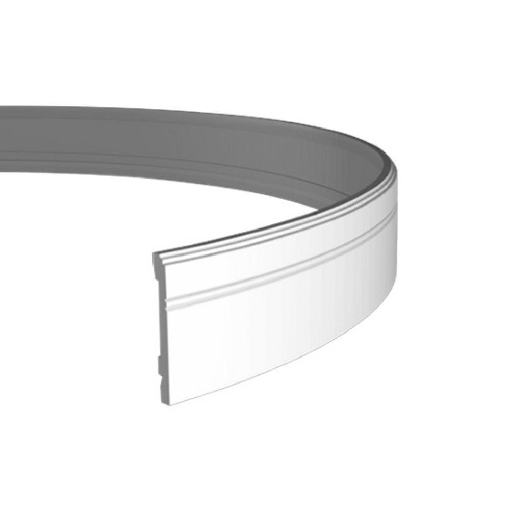Плинтус под покраску Европласт 1.53.103 изготовлен из гибкого и влагостойкого пенополиуретана. Элемент имеет прямой изгиб 550 мм в своей плоскости и подходит для использования на закругленных поверхностях. Подходит для любых комнат, в том числе ванной и кухни.