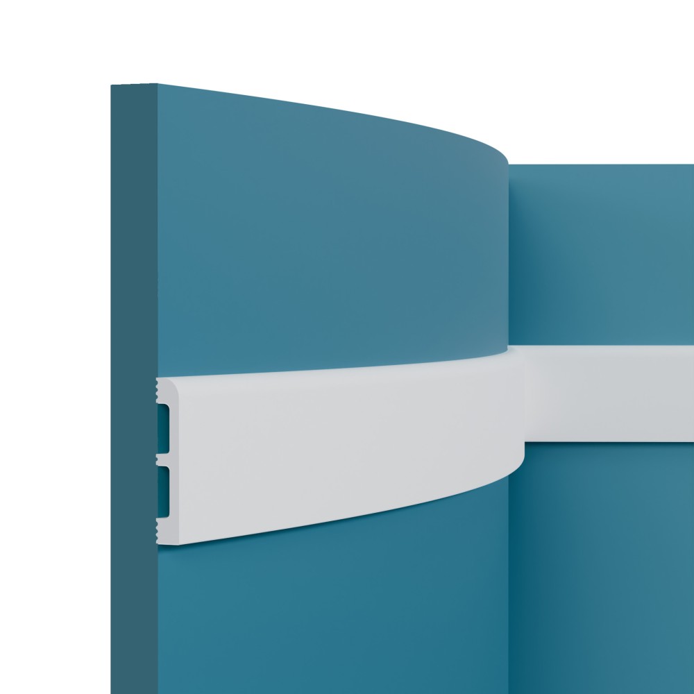 Плинтус под покраску Перфект Плюс P83F изготовлен из полиуретана — влагостойкого и гибкого материала. Подходит для декорирования стен в любых комнатах, в том числе в ванной или на кухне.