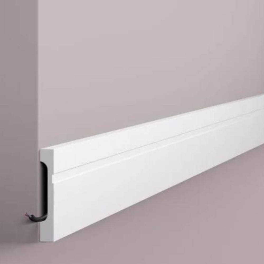 Плинтус под покраску NMC выполнен из полистирола — прочного и стойкого к износу материала. Декор загрунтован и готов к покраске.