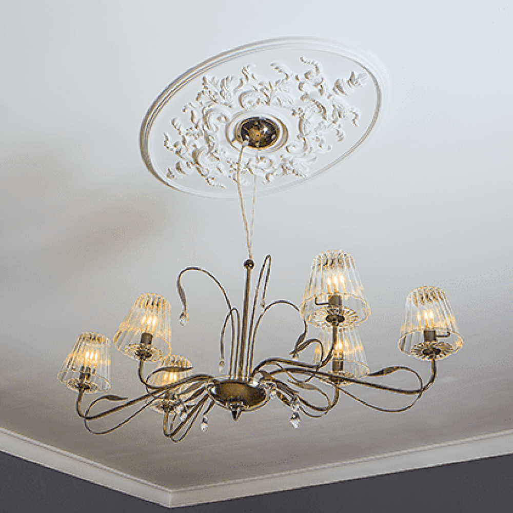 Потолочная розетка под покраску Европласт 1.56.041 изготовлена из экологичного и долговечного пенополиуретана. Благодаря устойчивости к влаге подходит не только для жилых комнат, но и для кухни или ванной.