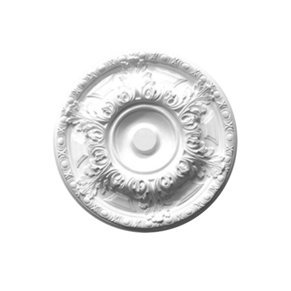Потолочная розетка под покраску Перфект Плюс B3033 изготовлена из легкого и прочного полиуретана, который не нагружает стены, не впитывает загрязнения и может использоваться во внутренних и наружных работах. Благодаря устойчивости к влаге и плесени подходит не только для жилых комнат, но и для кухни или ванной.