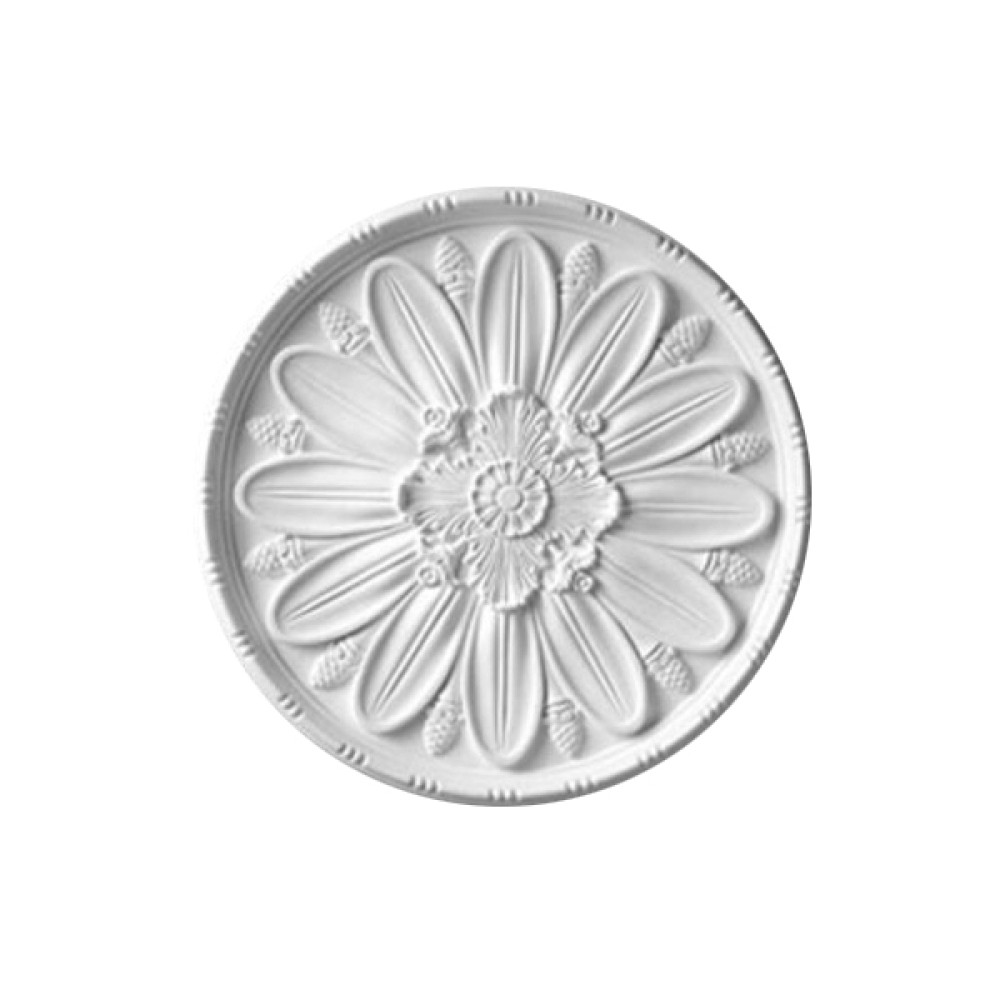 Потолочная розетка под покраску Перфект Плюс B3042 изготовлена из легкого и прочного полиуретана, который не нагружает стены, не впитывает загрязнения и может использоваться во внутренних и наружных работах. Благодаря устойчивости к влаге и плесени подходит не только для жилых комнат, но и для кухни или ванной.