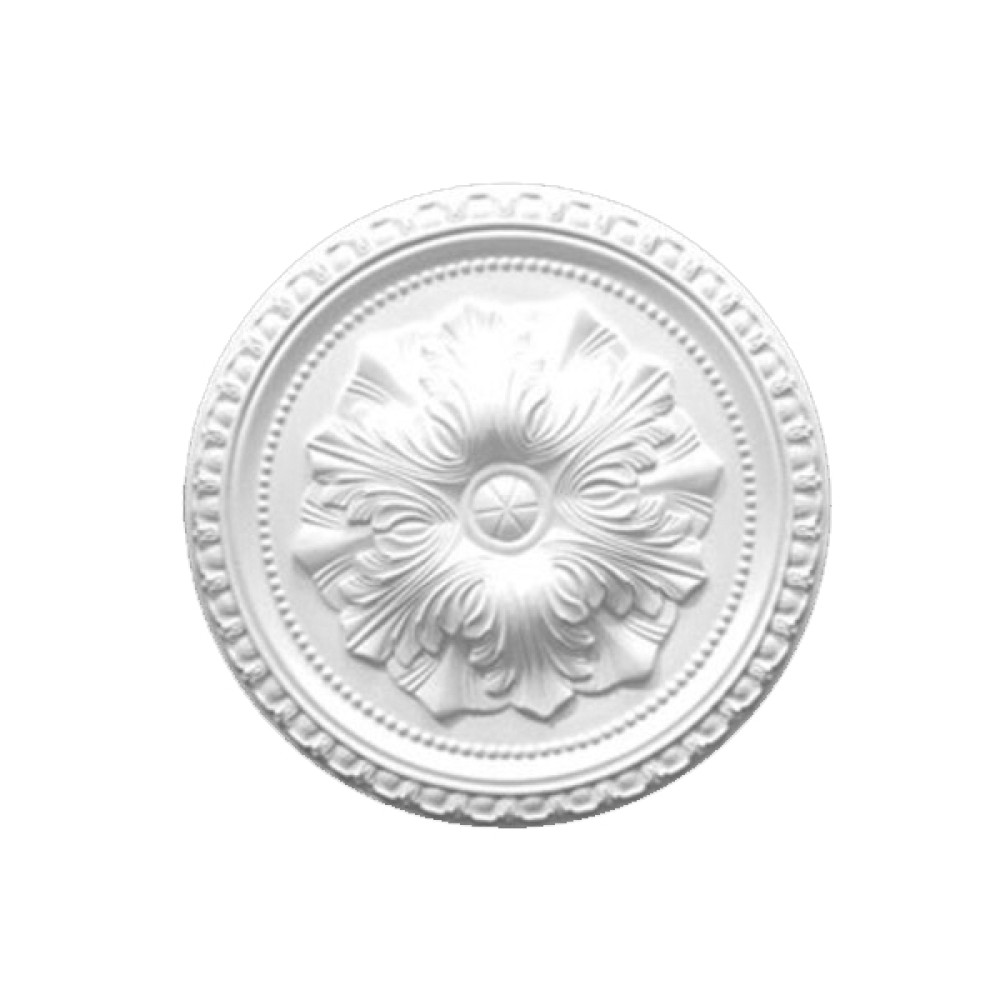 Потолочная розетка под покраску Перфект Плюс B3061 изготовлена из легкого и прочного полиуретана, который не нагружает стены, не впитывает загрязнения и может использоваться во внутренних и наружных работах. Благодаря устойчивости к влаге и плесени подходит не только для жилых комнат, но и для кухни или ванной.