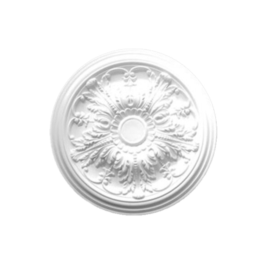 Потолочная розетка под покраску Перфект Плюс B3064 изготовлена из легкого и прочного полиуретана, который не нагружает стены, не впитывает загрязнения и может использоваться во внутренних и наружных работах. Благодаря устойчивости к влаге и плесени подходит не только для жилых комнат, но и для кухни или ванной.