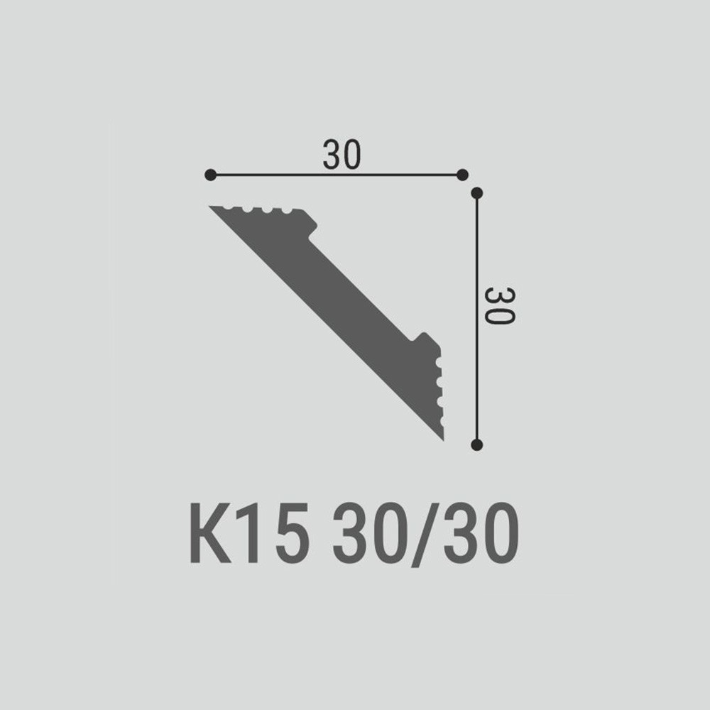 Потолочный плинтус под покраску Bello Deco К15 изготовлен из полистирола высокой плотности, который не дает усадки и не желтеет со временем. Поверхность загрунтована и готова к покраске. Монтаж с помощью клея.