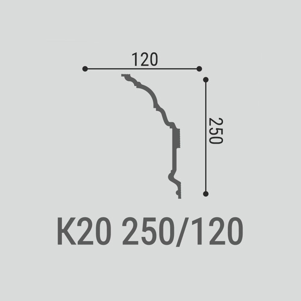 Потолочный плинтус под покраску Bello Deco К20 изготовлен из полистирола высокой плотности, который не дает усадки и не желтеет со временем. Поверхность загрунтована и готова к покраске. Монтаж с помощью клея.