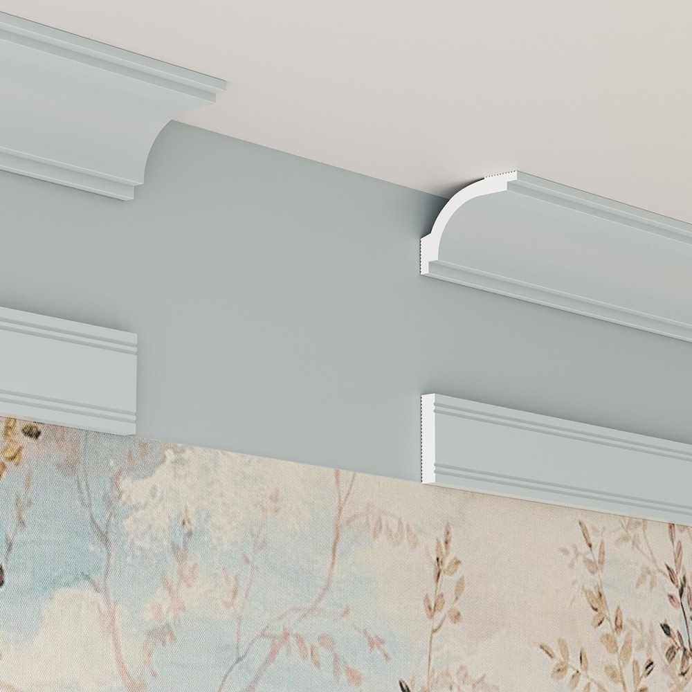 Потолочный плинтус под покраску Cosca Decor KX048 изготовлен из экополимера (полистирола) — ударопрочного и влагостойкого материала. Изделие загрунтовано в своей массе — его можно красить любой краской, либо использовать неокрашенным, при этом экополимер не пожелтеет со временем и сохранит свой белый цвет благодаря светостабилизатору в составе.