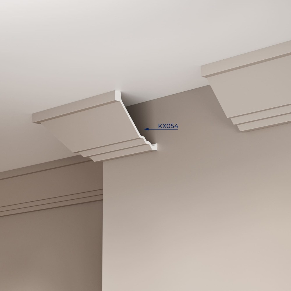 Потолочный плинтус под покраску Cosca Decor KX054 изготовлен из экополимера (полистирола) — ударопрочного и влагостойкого материала. Изделие загрунтовано в своей массе — его можно красить любой краской, либо использовать неокрашенным, при этом экополимер не пожелтеет со временем и сохранит свой белый цвет благодаря светостабилизатору в составе.