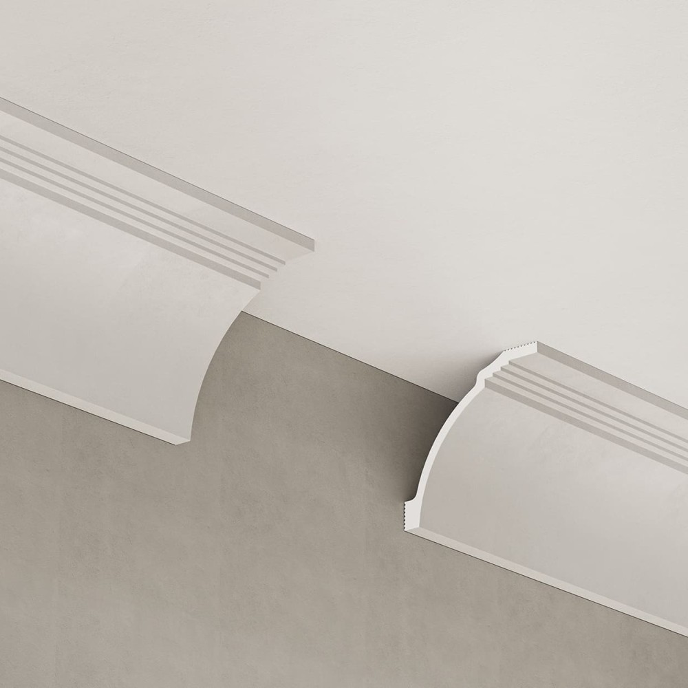 Потолочный плинтус под покраску Cosca Decor KX064 изготовлен из экополимера (полистирола) — ударопрочного и влагостойкого материала. Изделие загрунтовано в своей массе — его можно красить любой краской, либо использовать неокрашенным, при этом экополимер не пожелтеет со временем и сохранит свой белый цвет благодаря светостабилизатору в составе.