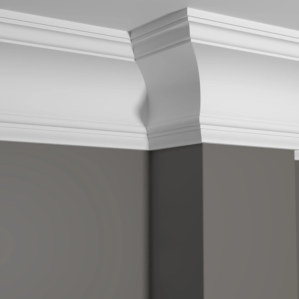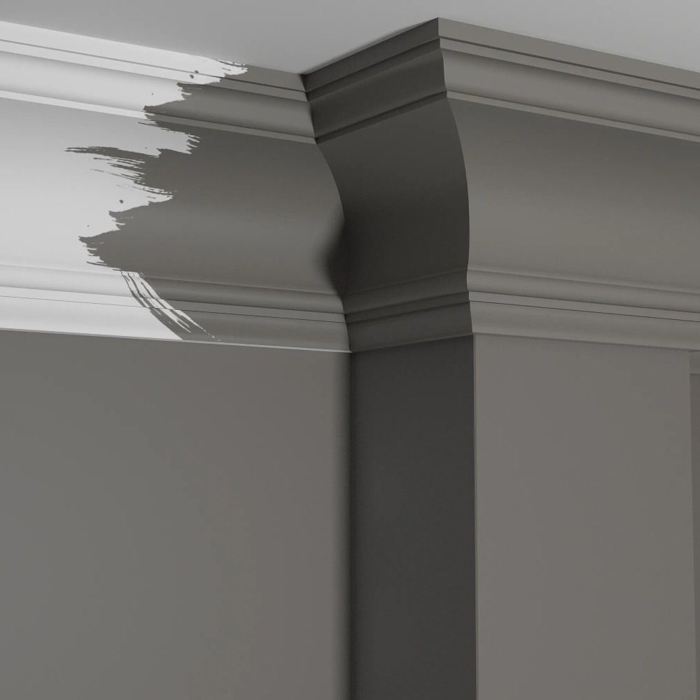 Потолочный плинтус под покраску Decor-Dizayn выполнен из полистирола высокой плотности — легкого и прочного материала. Декор готов к покраске сразу после установки. Карниз устанавливается при помощи клея.