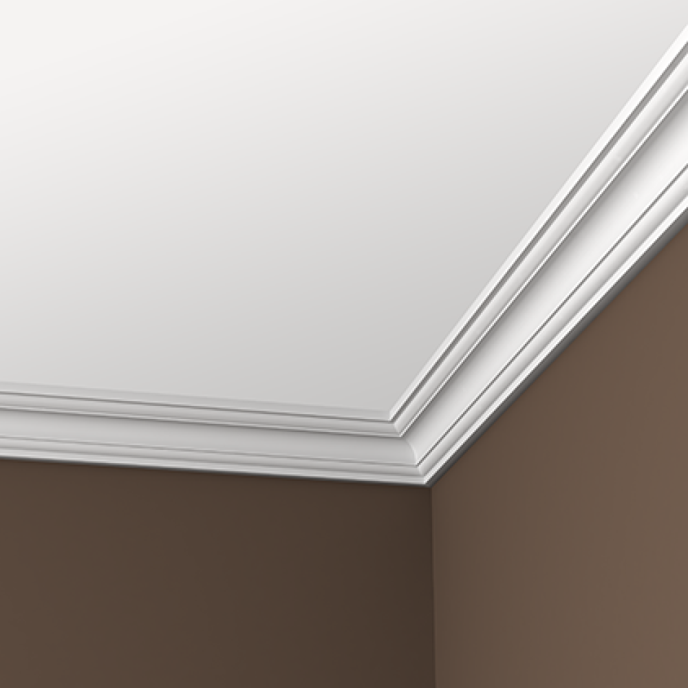Потолочный плинтус под покраску Европласт 1.50.141 изготовлен из прочного и долговечного пенополиуретана. Материал не выделяет вредных веществ и устойчив к образованию грибка, поэтому подходит для ванных комнат, санузлов, кухонь и балконов.