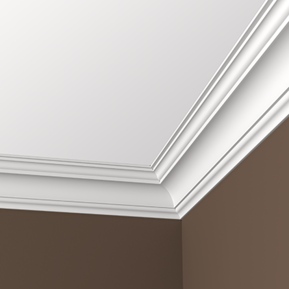 Потолочный плинтус под покраску Европласт 1.50.148 изготовлен из прочного и долговечного пенополиуретана. Материал не выделяет вредных веществ и устойчив к образованию грибка, поэтому подходит для ванных комнат, санузлов, кухонь и балконов.