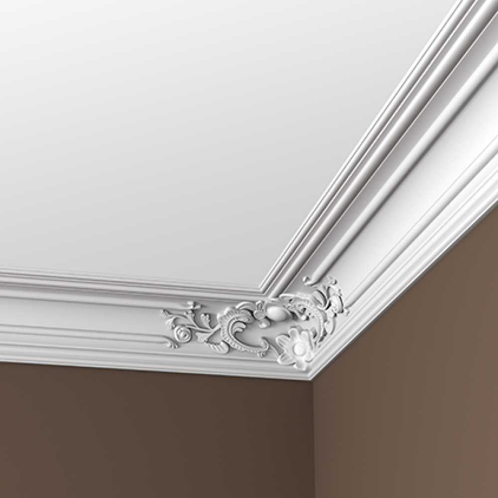 Потолочный плинтус под покраску Европласт 1.50.167 изготовлен из прочного и долговечного пенополиуретана. Материал не выделяет вредных веществ и устойчив к образованию грибка, поэтому подходит для ванных комнат, санузлов, кухонь и балконов.