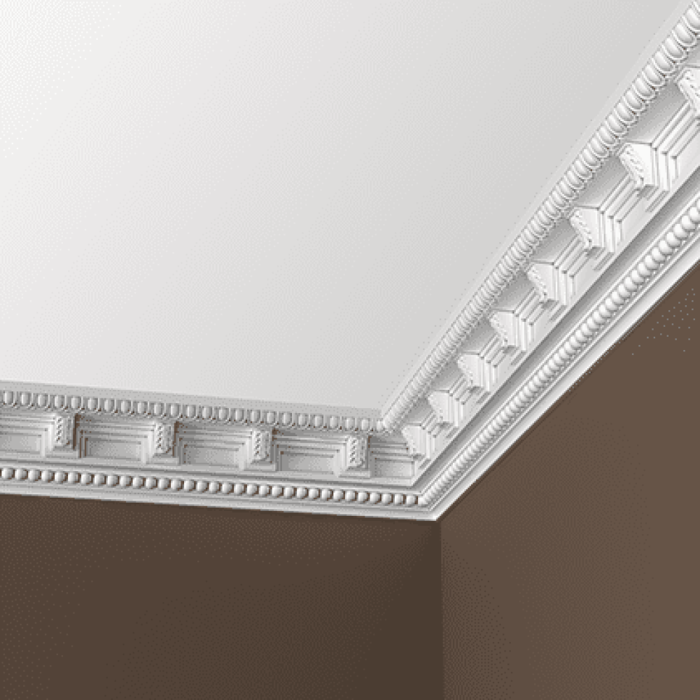 Потолочный плинтус под покраску Европласт 1.50.169 изготовлен из прочного и долговечного пенополиуретана. Материал не выделяет вредных веществ и устойчив к образованию грибка, поэтому подходит для ванных комнат, санузлов, кухонь и балконов.