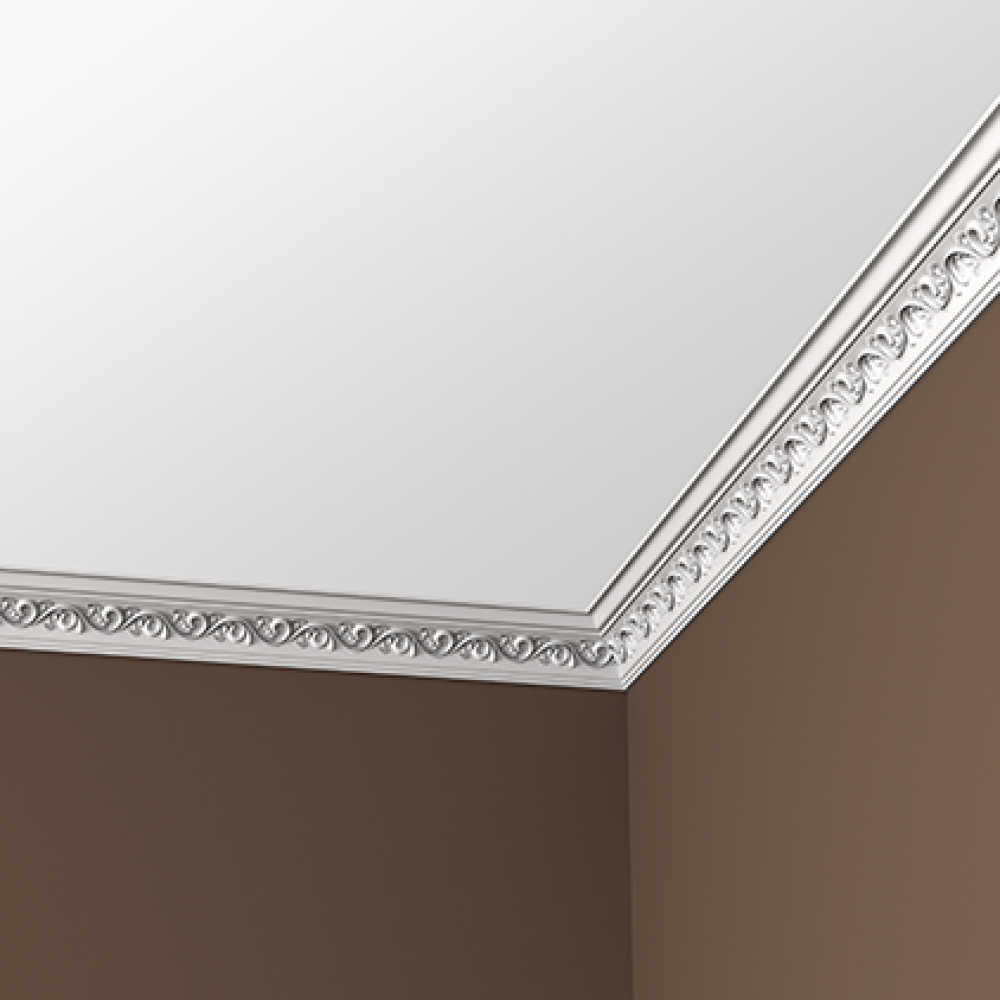 Потолочный плинтус под покраску Европласт 1.50.189 изготовлен из прочного и долговечного пенополиуретана. Материал не выделяет вредных веществ и устойчив к образованию грибка, поэтому подходит для ванных комнат, санузлов, кухонь и балконов.