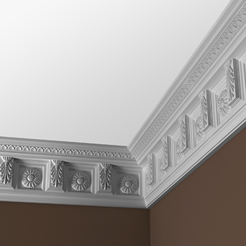 Потолочный плинтус под покраску Европласт 1.50.281 изготовлен из прочного и долговечного пенополиуретана. Материал не выделяет вредных веществ и устойчив к образованию грибка, поэтому подходит для ванных комнат, санузлов, кухонь и балконов.