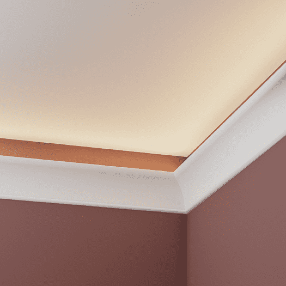 Потолочный плинтус под покраску Европласт 1.50.623 изготовлен из прочного и долговечного пенополиуретана. Материал не выделяет вредных веществ и устойчив к образованию грибка, поэтому подходит для ванных комнат, санузлов, кухонь и балконов.