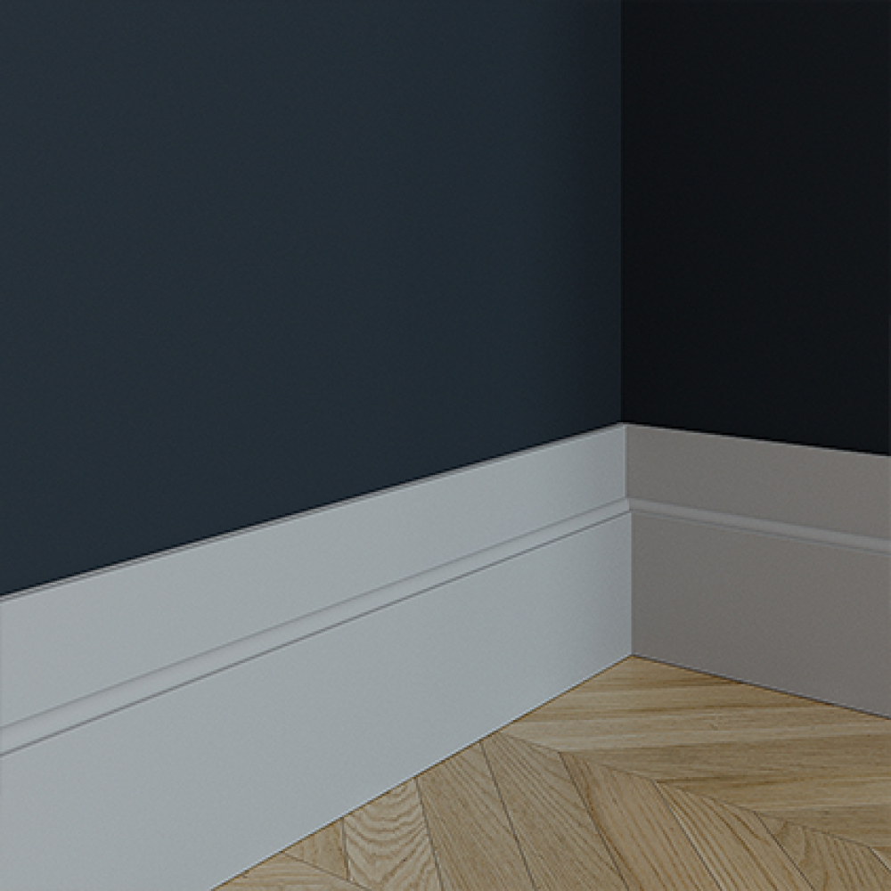 Плинтус уже загрунтован и полностью готов к финишной покраске. Монтаж производится с помощью монтажного клея, а между собой плинтусы крепятся на стыковочный клей.