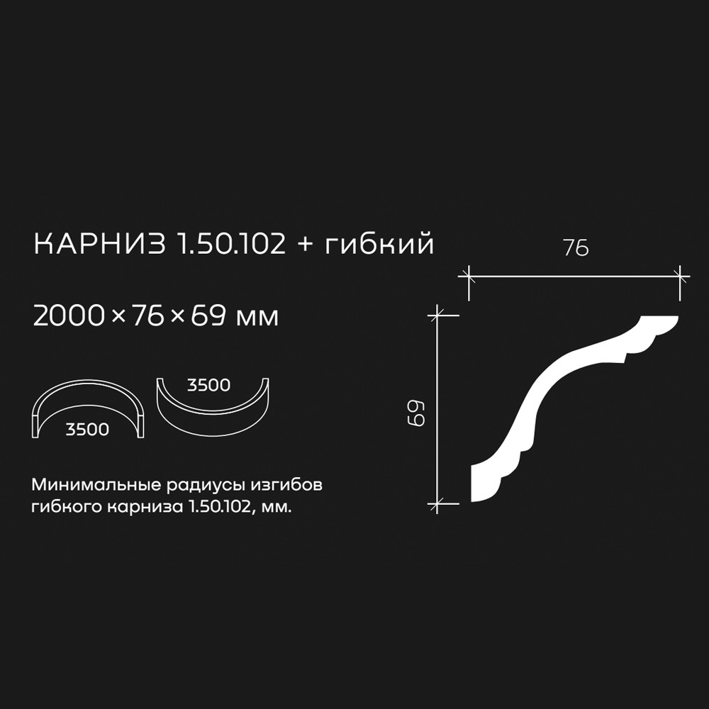 Потолочный плинтус под покраску Европласт 1.50.102 изготовлен из гибкого и влагостойкого пенополиуретана. Материал не выделяет вредных веществ и устойчив к образованию грибка, поэтому подходит для ванных комнат, санузлов, кухонь и балконов. Плинтус может использоваться на закругленных поверхностях и имеет радиус изгиба выпуклый — 3500 мм, радиус изгиба вогнутый — 3500 мм.