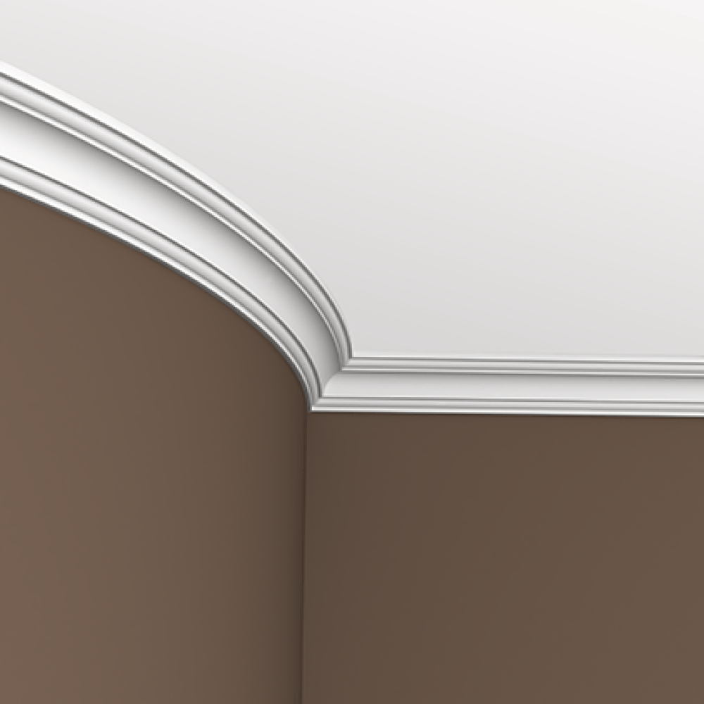 Потолочный плинтус под покраску Европласт 1.50.115 изготовлен из гибкого и влагостойкого пенополиуретана. Материал не выделяет вредных веществ и устойчив к образованию грибка, поэтому подходит для ванных комнат, санузлов, кухонь и балконов. Плинтус может использоваться на закругленных поверхностях и имеет радиус изгиба выпуклый — 2500 мм, радиус изгиба вогнутый — 2000 мм.