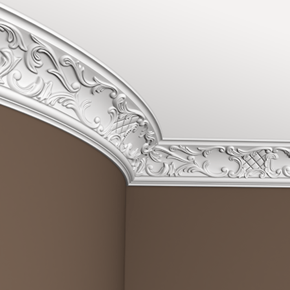 Потолочный плинтус под покраску Европласт 1.50.125 изготовлен из гибкого и влагостойкого пенополиуретана. Материал не выделяет вредных веществ и устойчив к образованию грибка, поэтому подходит для ванных комнат, санузлов, кухонь и балконов. Плинтус может использоваться на закругленных поверхностях и имеет радиус изгиба выпуклый — 2500 мм, радиус изгиба вогнутый — 2000 мм.