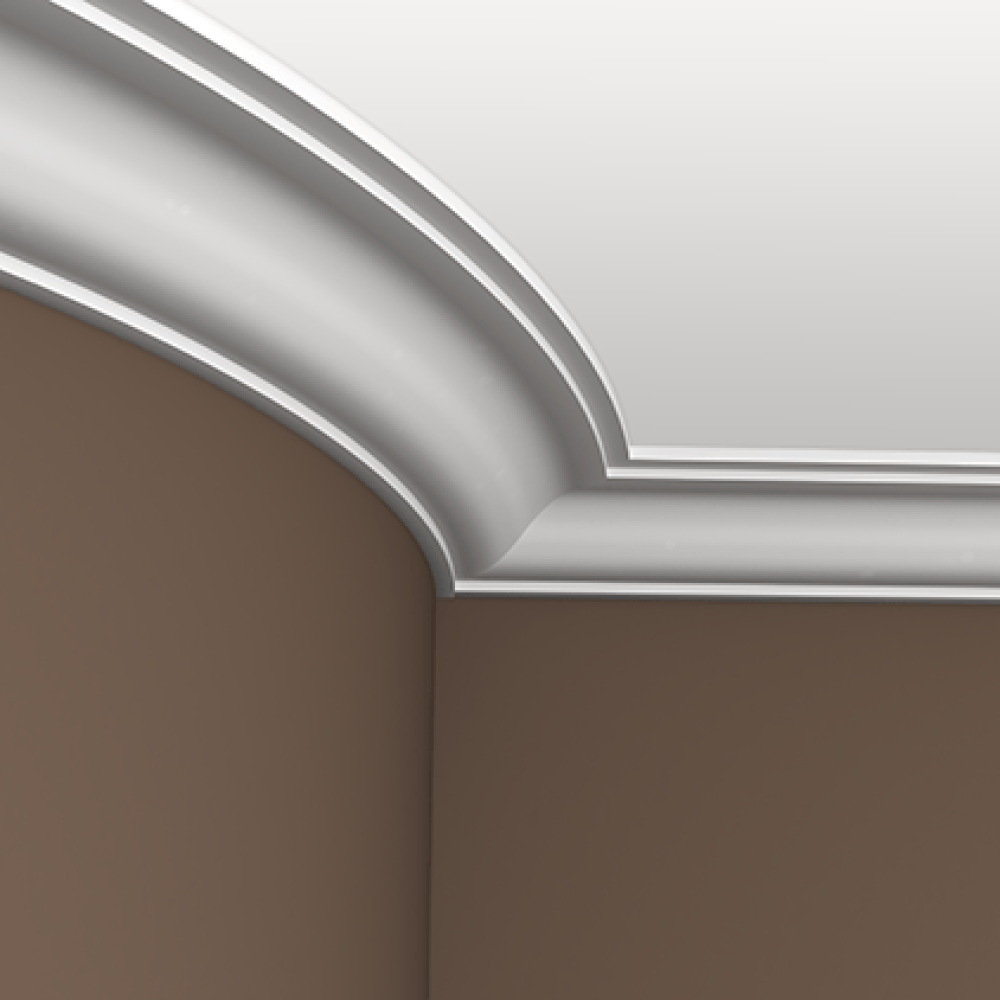Потолочный плинтус под покраску Европласт 1.50.131 изготовлен из гибкого и влагостойкого пенополиуретана. Материал не выделяет вредных веществ и устойчив к образованию грибка, поэтому подходит для ванных комнат, санузлов, кухонь и балконов. Плинтус может использоваться на закругленных поверхностях и имеет радиус изгиба выпуклый — 3000 мм, радиус изгиба вогнутый — 2500 мм.