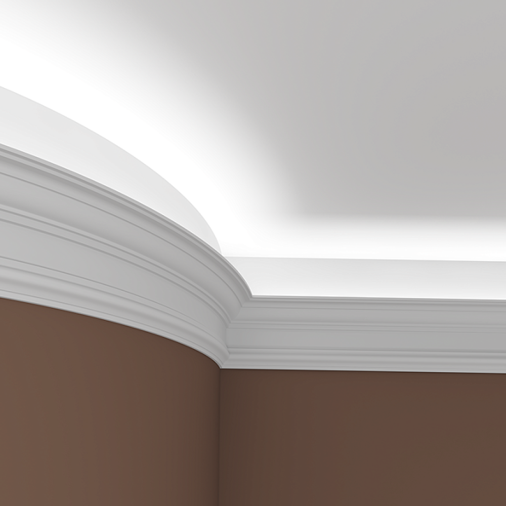 Потолочный плинтус под покраску Европласт 1.50.132 изготовлен из гибкого и влагостойкого пенополиуретана. Материал не выделяет вредных веществ и устойчив к образованию грибка, поэтому подходит для ванных комнат, санузлов, кухонь и балконов. Плинтус может использоваться на закругленных поверхностях и имеет радиус изгиба выпуклый — 2500 мм, радиус изгиба вогнутый — 3000 мм.