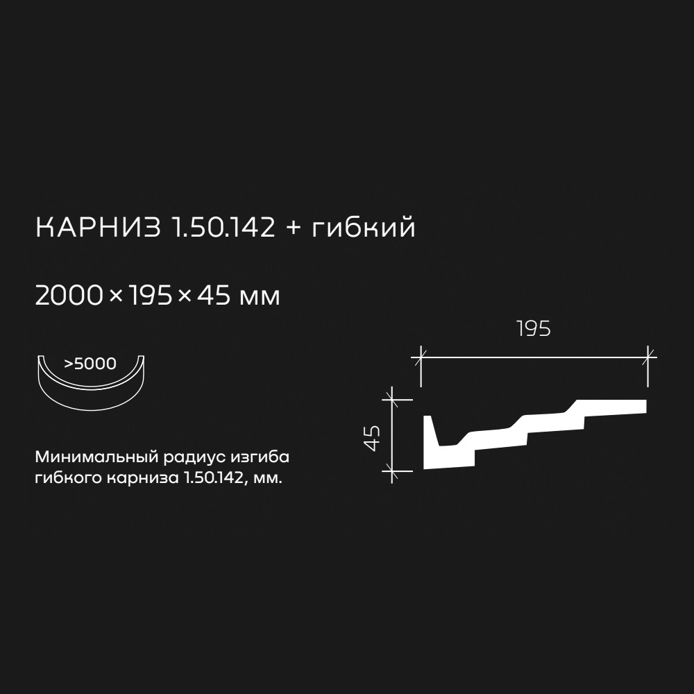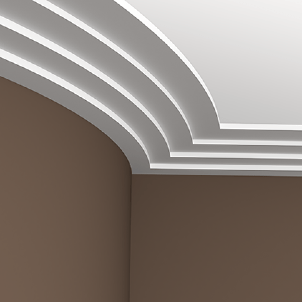 Потолочный плинтус под покраску Европласт 1.50.142 изготовлен из гибкого и влагостойкого пенополиуретана. Материал не выделяет вредных веществ и устойчив к образованию грибка, поэтому подходит для ванных комнат, санузлов, кухонь и балконов. Плинтус может использоваться на закругленных поверхностях и имеет радиус изгиба — более 5000 мм.