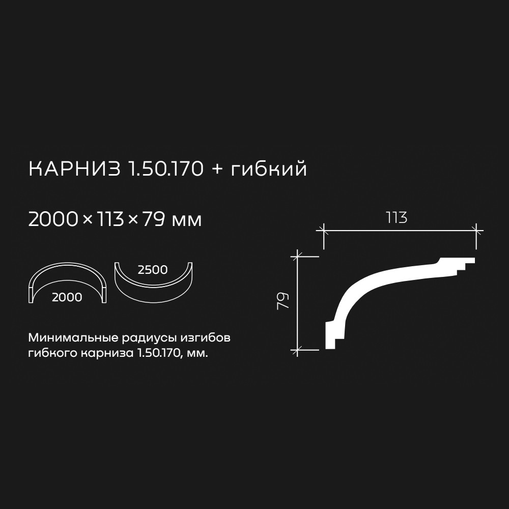 Потолочный плинтус под покраску Европласт 1.50.170 изготовлен из гибкого и влагостойкого пенополиуретана. Материал не выделяет вредных веществ и устойчив к образованию грибка, поэтому подходит для ванных комнат, санузлов, кухонь и балконов. Плинтус может использоваться на закругленных поверхностях и имеет радиус изгиба выпуклый — 2500 мм, радиус изгиба вогнутый — 2000 мм.