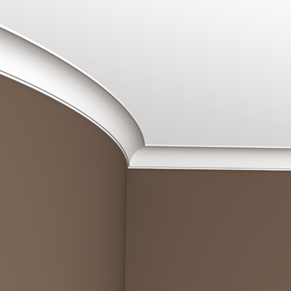 Потолочный плинтус под покраску Европласт 1.50.172 изготовлен из гибкого и влагостойкого пенополиуретана. Материал не выделяет вредных веществ и устойчив к образованию грибка, поэтому подходит для ванных комнат, санузлов, кухонь и балконов. Плинтус может использоваться на закругленных поверхностях и имеет радиус изгиба выпуклый — 1500 мм, радиус изгиба вогнутый — 1000 мм.