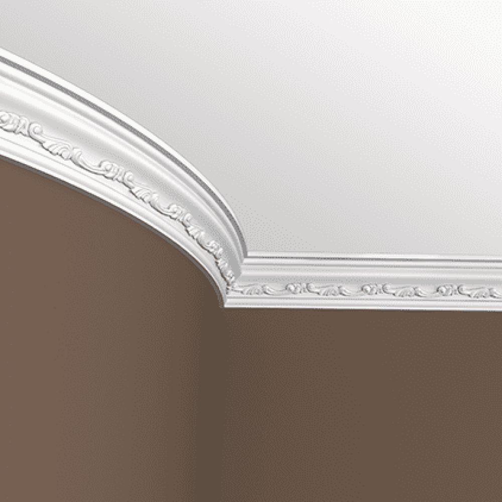 Потолочный плинтус под покраску Европласт 1.50.192 изготовлен из гибкого и влагостойкого пенополиуретана. Материал не выделяет вредных веществ и устойчив к образованию грибка, поэтому подходит для ванных комнат, санузлов, кухонь и балконов. Плинтус может использоваться на закругленных поверхностях и имеет радиус изгиба выпуклый — 1500 мм, радиус изгиба вогнутый — 1000 мм.