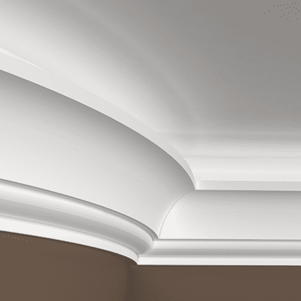 Потолочный плинтус под покраску Европласт 1.50.221 изготовлен из гибкого и влагостойкого пенополиуретана. Материал не выделяет вредных веществ и устойчив к образованию грибка, поэтому подходит для ванных комнат, санузлов, кухонь и балконов. Плинтус может использоваться на закругленных поверхностях и имеет радиус изгиба — более 4000 мм.