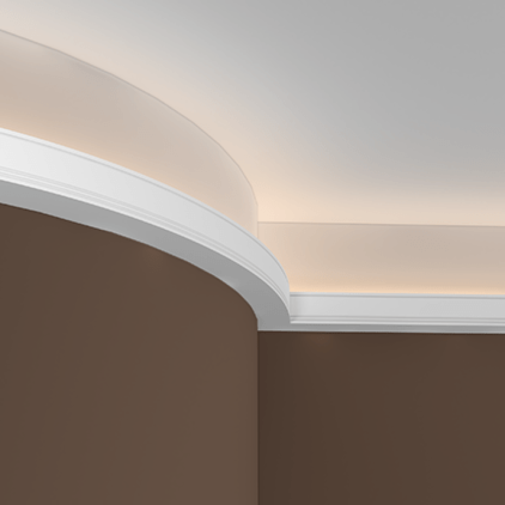 Потолочный плинтус под покраску Европласт 1.50.226 изготовлен из гибкого и влагостойкого пенополиуретана. Материал не выделяет вредных веществ и устойчив к образованию грибка, поэтому подходит для ванных комнат, санузлов, кухонь и балконов. Плинтус может использоваться на закругленных поверхностях и имеет радиус изгиба — 3000 мм.