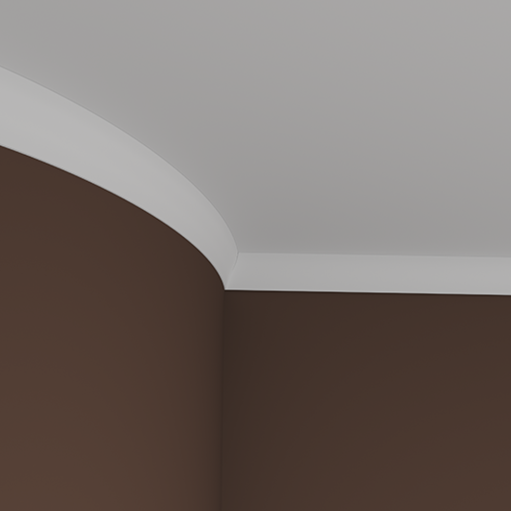 Потолочный плинтус под покраску Европласт 1.50.229 изготовлен из гибкого и влагостойкого пенополиуретана. Материал не выделяет вредных веществ и устойчив к образованию грибка, поэтому подходит для ванных комнат, санузлов, кухонь и балконов. Плинтус может использоваться на закругленных поверхностях и имеет радиус изгиба — 3500 мм.